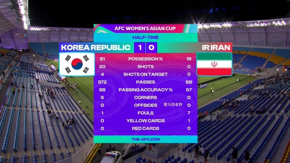 A组第二场比赛北京时间今天下午17点拉开战幕由韩国女足对阵伊朗女足,最终韩国女足以3比0轻取伊朗女足,和昨天A组第一场澳大利亚女足和菲律宾女足的比赛一样,这也是一场一边倒的比赛。