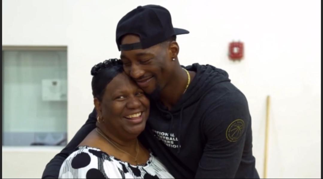 而场外的阿德巴约,也完美地继承了母亲的善良。